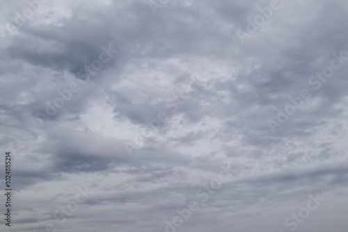 Gray rain clouds loaded with rain in the sky. Overcast sky with dark clouds. Dark sky before a thunderstorm.