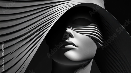 Gray sculpted woman, futuristic hood, close-up
