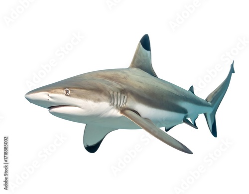Gray shark in profile view against a plain white background.