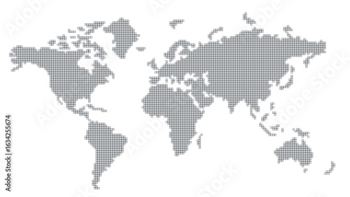 Gray silhouette of Global Map isolated on transparent background. Flat world map displayed on lined square grid. 3D illustration