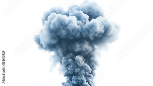Gray Smoke Plume Explosion: 3D Render. AI Generated