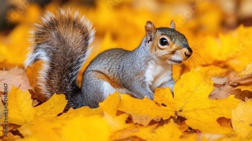Gray squirrel amidst vibrant autumn leaves