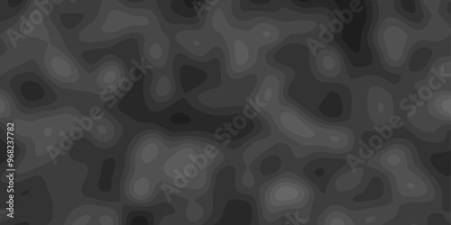 Gray Stylized Bokeh Effect Topographic Contour Scheme and Terrain on old paper. Geographic mountain terrain. Contour map background. Cartographic Weave with seamless striped patterns and wavy edges