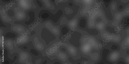 Gray Stylized Bokeh Effect Topographic Contour Scheme and Terrain on old paper. Geographic mountain terrain. Contour map background. Cartographic Weave with seamless striped patterns and wavy edges