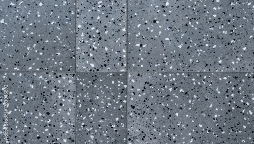 Gray terrazzo floor tiles texture with black and white speckles in a square arrangement
