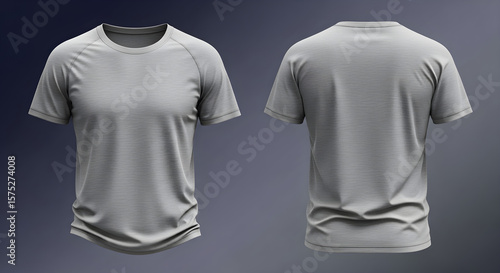 Gray t-shirt mockup, front and back view, displayed against a gradient background.