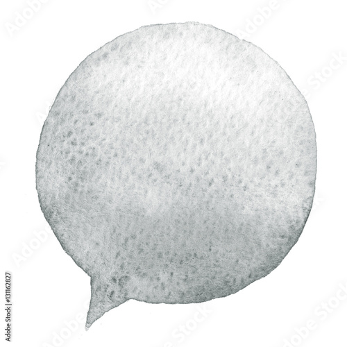 Gray watercolor speech bubble isolated on white background. Hand drawn paint stain