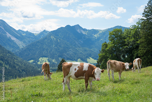grazing cows at the pasture, alpine landscape above Bayrischzell