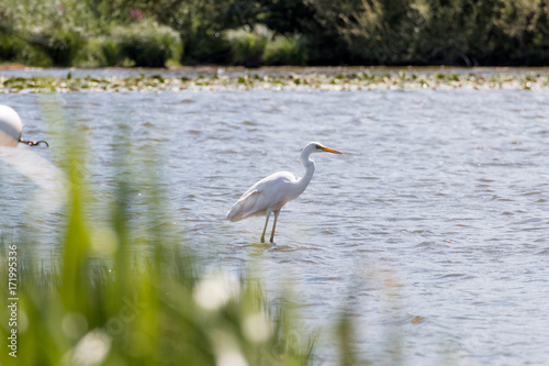 Great egret in a lake in France - Lac de Grand Lieu - France