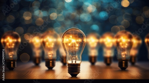 Great idea concept, Idea, innovation and inspiration, creativity with light bulbs that shine glitter on table, new ideas with innovative technology and creativity, business, education, technology