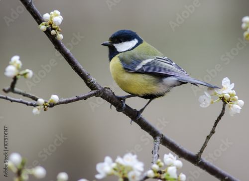 Great Tit in flowering mirabelle