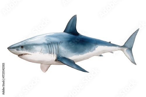 Great white shark illustration hand drawn watercolor isolated food chain concept. Large predatory fish in the ocean.