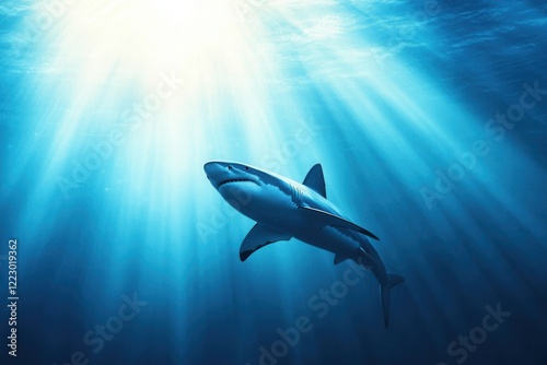 Great White Shark swimming in ocean depths