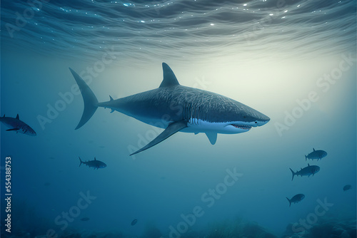 Great White Shark Swimming in the Ocean, Digital Illustration, Concept Art