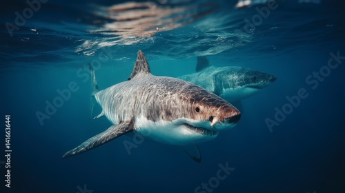 Great White Sharks Underwater Ocean Wildlife Marine Life Predators Deep Sea Nature Ph