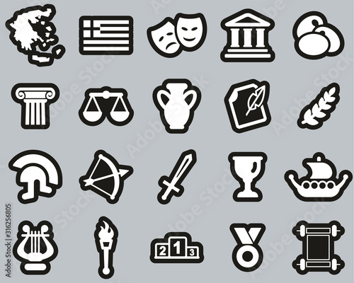 Greece Country & Culture Icons White On Black Sticker Set Big