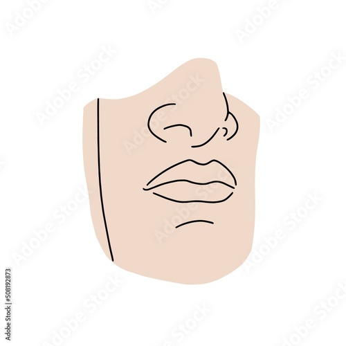 Greek face statue fragment. Ancient sculpture of human lips and nose. Stone marble part of antique Greece art drawn in modern style. Flat graphic vector illustration isolated on white background