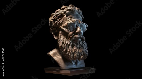 Greek head of a man with a beard and dark glasses, statue, sculpture, realism. generative AI.