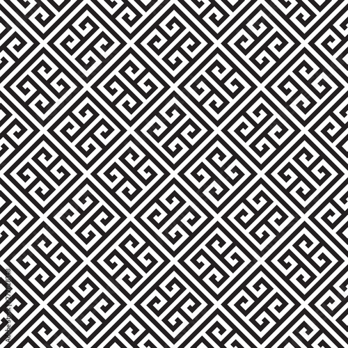 Greek Key / Meander geometric ornamental background. Seamless decorative design in black color.