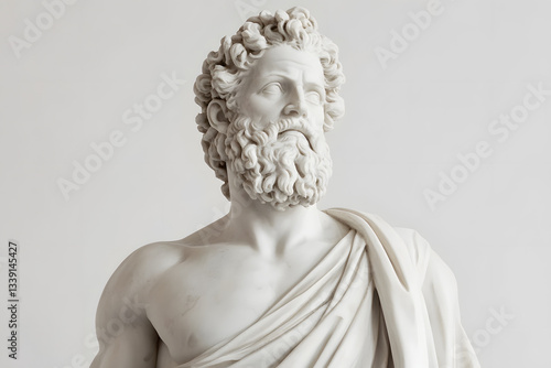 Greek sculpture of an old stoic man, roman god statue, white creme background