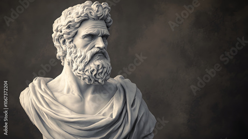 Greek sculpture of an old stoic man, roman god statue, black and white