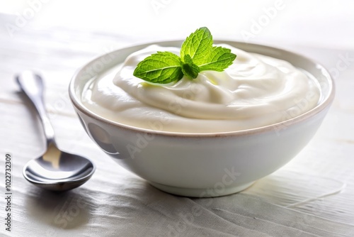 Greek Yogurt in Bowl Isolated on White Background for Culinary and Health Photography