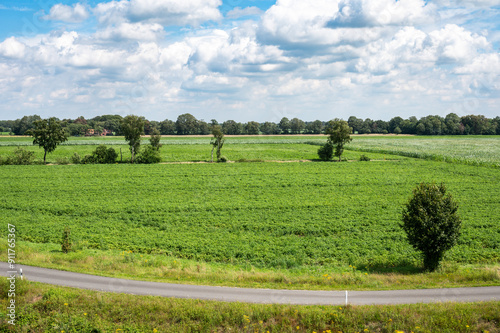 Green agriculture field and trees at the German countryside around Dalum, Lower Saxony, Germany