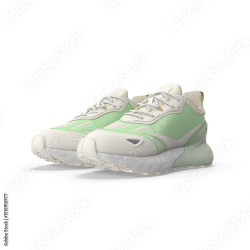 Green and White Athletic Sneakers Isolated on Transparent Background