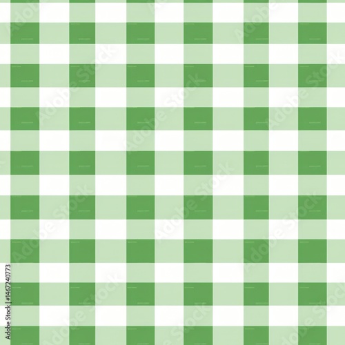 Green and white gingham pattern for picnic tablecloth, kitchen textile, or country-style decor. Classic checkered seamless design with rustic charm. Vintage fabric texture.