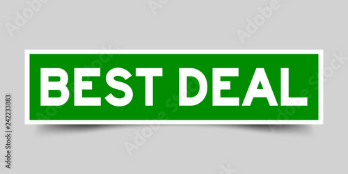 Green and white sticker with word best deal on gray background