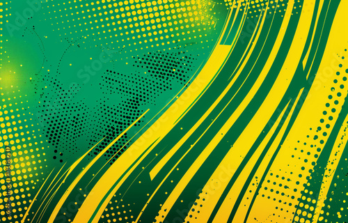 green and yellow striped background with a halftone green and yellow brush pattern on it