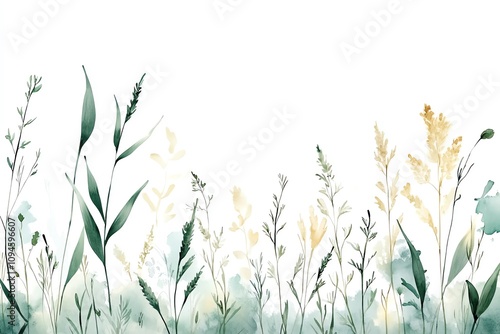 green and yellow wildflowers on a white background.