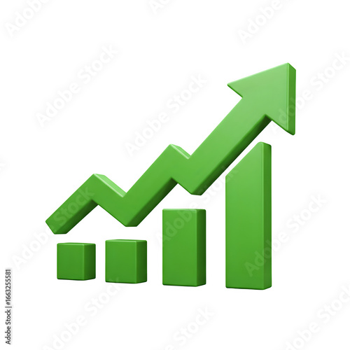 Green Arrow Graph Up Icon PNG – Growth and Success Symbol – Isolated on Transparent Background PNG for UI, Android, iOS, App & Web Design