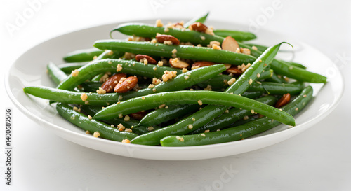Green Bean Almondine on Plate Freshly Cooked Ready To Eat