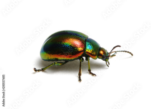 Green beetle on white