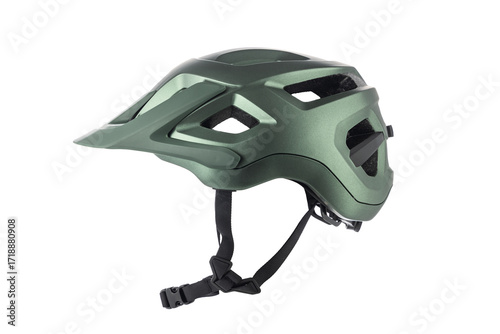 Green Bicycle Helmet with Straps and Modern Ventilation Design isolated on white background