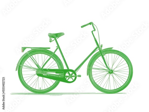 green bicycle, white background, vintage style, simple design, two-wheeler, transportation