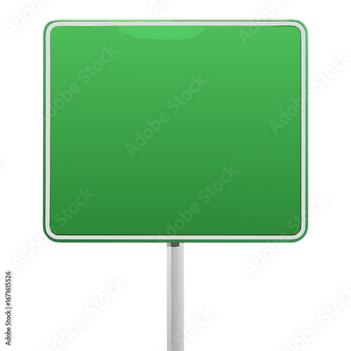 Green blank road sign on pole isolated on a transparent background empty signpost 2