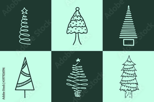 Green blue fir tree pine flyer isolated vector illustration. Christmas square forest leaflet. December nature plant painted for postal, postcard, congratulation, napkin, celebration greeting card.