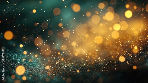 Green bokeh background. Beautiful green background with glitter and blurred and focal lights. Depth of field sparkling blue and green bokeh with light effects.