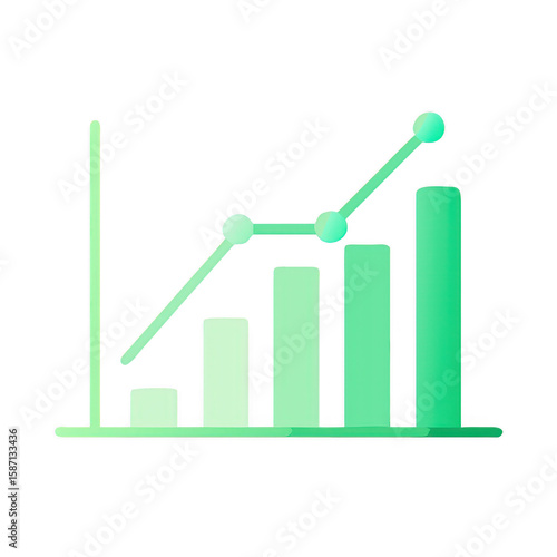 Green Business Graph Chart with Line on Transparent Background