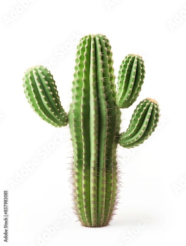 Green Cactus with Two Smaller Arms Isolated on White Background