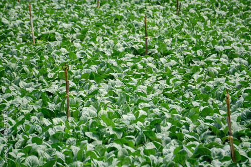 Green Cantonese vegetable garden with water sprinklers
