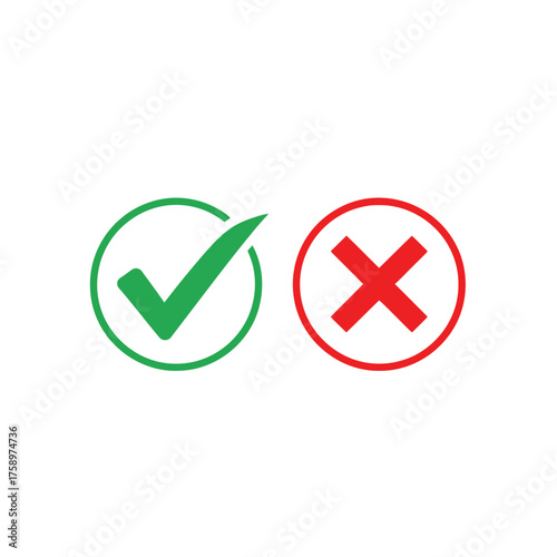 Green Check Mark and Red Cross Icon Set – Correct and Wrong Symbol Vector Design for UI, App, and Web Interface