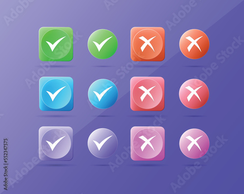 Green check mark and red cross icon set collection, Circle and square symbol Vector illustration