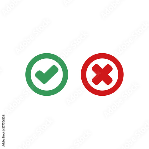 Green check mark and red cross icon symbol template black color editable vector sign isolated on white background illustration for graphic and web design.