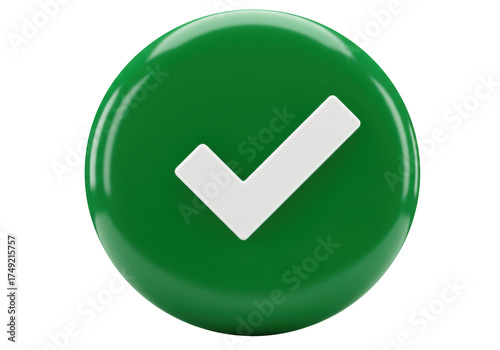 Green check mark button PNG isolated on transparent background, symbol of approval and confirmation for web design