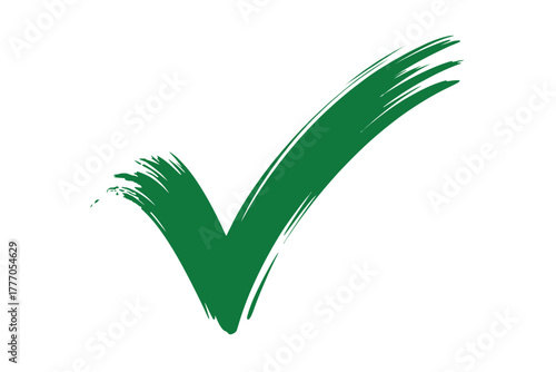 Green check mark illustration painted with a brush isolated on white background for approval or confirmation
