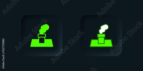Green Christmas chimney icon isolated on black background. Merry Christmas and Happy New Year. Black square button. Vector