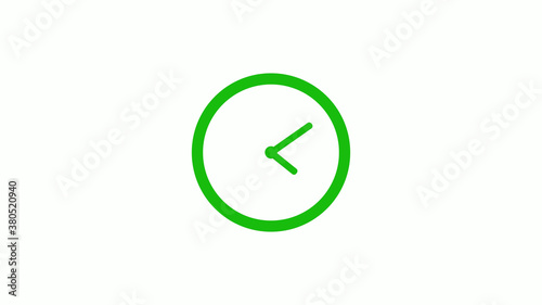 Green color circle 12 hours clock icon on white background,clock icon without trick
